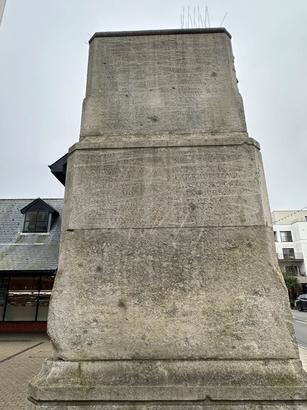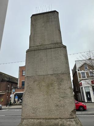 Front panel (facing road) - lower step panel notes bomb damage during Second World War - Taken by Howard Davies 29 Nov 2012