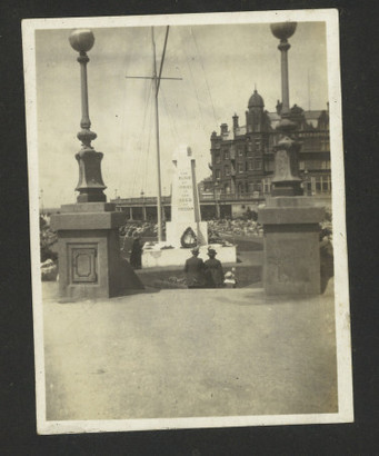 Believed to be the original war memorial on this spot > (approx 1918-23) in Blackpool which was subsequently replaced - Taken by Taken by Arnold Evans (1901-1990) 01 Jan 1920