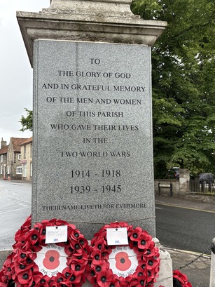 TO // THE GLORY OF GOD // AND IN GRATEFUL MEMORY // OF THE MEN AND WOMEN // OF THIS PARISH // WHO GAVE THEIR LIVES // IN THE TWO WORLD WARS // 1914-1918 // 1939 -1945 // THEIR NAME LIVETH FOR EVERMORE.