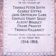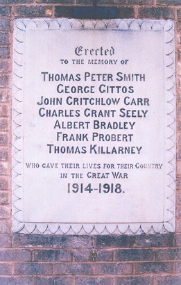 WW1 - Thomas Peter Smith, George Gittos, John Critchlow Carr, Charles Grant Seely, Albert Bradley, Frank Probert, Thomas Killarney, George Basil Murray. // WW2 Charles Duroe
