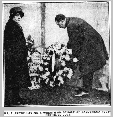 Representative from Ballymena RFC lays a wreath at the first wreath laying ceremony - Taken by Published in Larne Times Newspaper 30th January 1926 22 Jan 1926