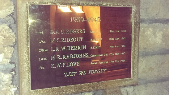 Pte D.A.G. Rogers Som I. I. 31st Jan 1942 L/Ac M.C. Rideout R.A.F.V.R. 26th Sep 1942 C/Man. L.R.W. Herrin R.E.M.E 4th Apr 1943 L/Cpl M.R. Rabjohns Coldstream Gds. 17th May 1943 Fus. K.W.F. Love Royal Fusiliers 17th Feb. 1944