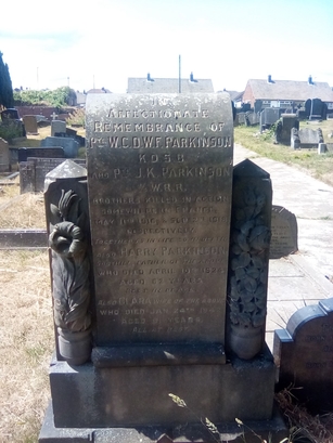 In affectionate remembrance of Pte. W. C. D. W. F. Parkinson K.O.S.B. and Pte. J. K. Parkinson 2/4 W R P. brothers killed in action somewhere in France May 11th 1916 & Sep 2nd 1918 Respectfully together as in life so as in death