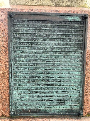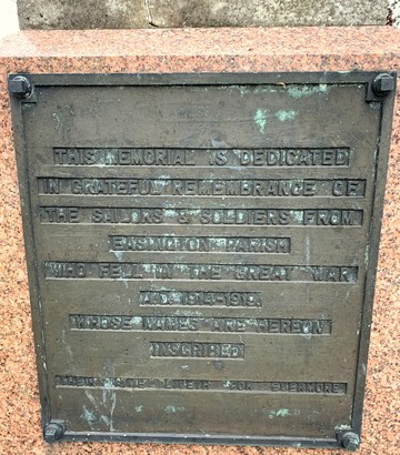 THIS MEMORIAL IS DEDICATED IN GRATEFUL REMEMBRANCE OF THE SAILORS & SOLDIERS FROM EASINGTON PARISH WHO FELL IN THE GREAT WAR A.D. 1914-1919 WHOSE NAMES ARE HEREON INSCRIBED THEIR NAME LIVETH FOR EVERMORE