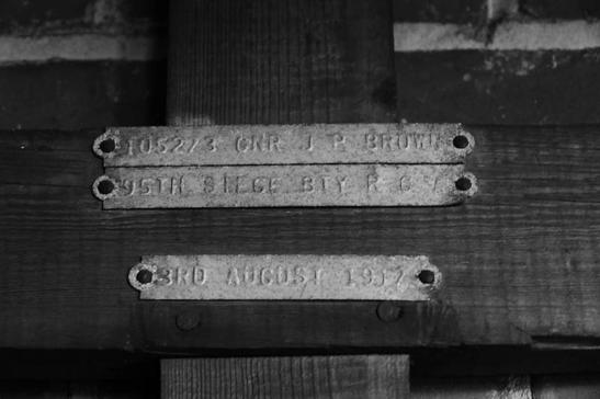 Tag 1: G.R.U. Tag 2: 105273 GNR J. P. BROWN Tag 3: 95TH SIEGE BTY R.G.A. Tag 4: 3RD AUGUST 1917