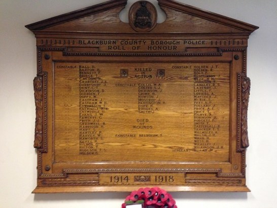 Constables: Ball, H.; Barton, H.; Bridge T.F.; Cayton, W.; Crabtree, J.A.; Darbyshire, J.; Dent, C.T.; Dickinson, D.; Duerden, F.; Duffy, W.; Eastham, J.; Eastham, W.H.; Edwardson, T.; Entwistle, A.E.; Entwistle, H.; Evans, J.W.; Fawcet, G.; Frith, J.J.; Gradwell, R.; Harrison, H.; Hart, S.; Hartley, P.; Harvey, W.; Haworth, S.; Heyes, H.; Hilton, G.; Hilton, T.; Hodgson, T.S.; Holden, G.; Holden, J.T.; Holden, R.; Holt, F.; Hutchinson, J.; Hyde, H.H.; Johnson, F.; Langley, R.S.; Lazenby, J.; Little, F.; Loynds, A.; Maycock, J.; McKie, S.; Peet, A.P.; Pollard, J.; Price, T.; Rigbye, A.; Robinson, J.; Rodgett, P.; Smith, T.; Tattersall, E.T.; Thacker, K.T.; Walmsley, A.; Walsh, J.H.; Ward, H.; West, H.; Whalley, J.; Wilkinson, J.; Sergeant: Moran, W. Those Killed in Action were: Constable Collis, W.A.; Colter, S.J.; Dickinson, J.; Grime, H.; Howson, J.; Moscrop, J.; Partington, H.; Pope, H.; Rhodes, A.; Smith, J. Died of Wounds: Constable: Bradshaw, J.