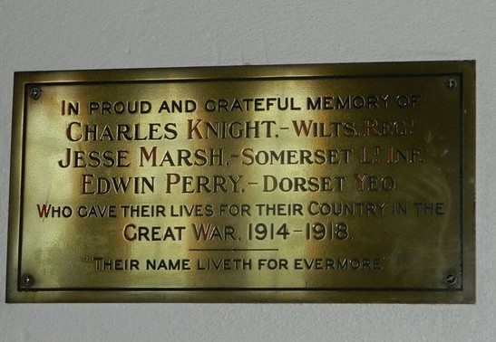 IN PROUD AND GRATEFUL MEMORY OF/ (NAMES)/ WHO GAVE THEIR LIVES FOR THEIR COUNTRY IN THE GREAT WAR 1914 - 1918/ 'THEIR NAME LIVETH FOR EVERMORE' (EXACT LINE SPACING UNKNOWN)
