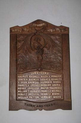 CLOSWORTH/ ROLL OF HONOUR/ 1914 1918/ SURVIVORS/ (names)/ THINK AND THANK