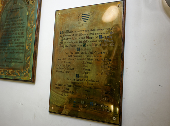 This tablet is erected in grateful recognition of the following local members of the volunteer forces and Imperial Yeomanry who so loyally and faithfully served their Queen, King and country in South Africa 1899 - 1902