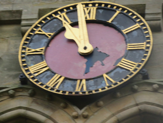 North dial on tower. We are seeking donations and grant funding to fully restore the dial. An application has been submitted to War Memorials Trust. - Taken by David 10 Nov 2025