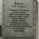 An addition to the lettering on a headstone on a family grave. The tall nowy-headed grey granite headstone has sprays of foliage in relief in a segmental panel at the head and an incised inscription...