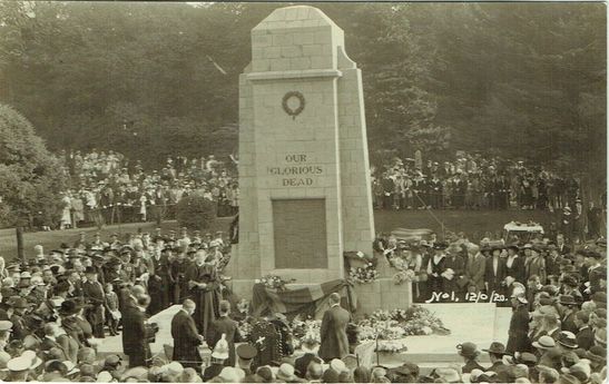 Ventnor - dedication ceremony 20 Oct 1920 from post card, showing original light sandstone colouring - Taken by Unknown 20 Oct 1920