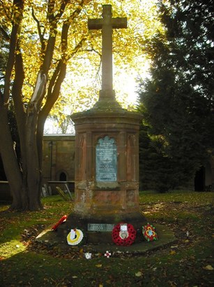 Stone cross memorial in churchyard - Taken by M Beevers 11 Nov 2012