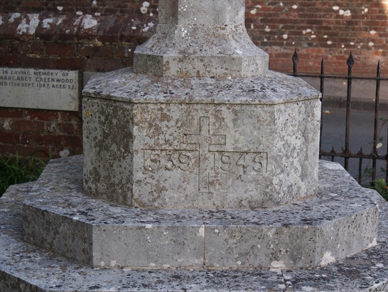 East face:- 1914 1919// ~~~~~~ East face top step:- AS DYING // ~~~~~~ East face middle step:- AND BEHOLD WE LIVE // ~~~~~~ South face:- 1939 1945 //