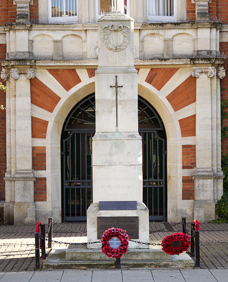 Lower Tier 6 o'clock face-IN GRATEFUL MEMORY OF THOSE WHO GAVE THEIR LIVES FOR KING AND COUNTRY IN THE GREAT WAR 1914-1918 On the joint between the lower tier and the plinth 6 o'clock face-AND ALSO THE 1939-1945 WAR 3 o'clock face Plaque 1-1914-1918/ Lieutenant H.O.B. Firman VC/S.S. "Julnar", Royal Navy/ Died age 20 0n 24 April 1916 3 o'clock face Plaque 2- [WW2 military names] 9 o'clock face Plaque 1- [WW1 names] 12 o'clock face Plaque 1- [WW2 civilian names] 12 o'clock face Plaque 2-DAMAGE TO THIS MEMORIAL/WAS CAUSED BY A GERMAN BOMB/WHICH FELL TWENTY FEET AWAY/ON 16TH OCTOBER 1940 6 o'clock face- THIS PLAQUE TO COMMEMORATE THE CENTENARY OF/THE GREAT WAR 1914-1919/AND/IN MEMORY OF ALL MEMBERS OF THE ARMED FORCES/INCLUDING POLICE FIRE AND AMBULANCE SERVICES/WHO GAVE THEIR LIVES IN THE SERVICE OF OUR COUNTRY/SINCE THE END OF BOTH WARS/LAID BY THE MALDEN AND COOMBE BRANCH OF TYHE/ROYAL BRITISH LEGION/WE WILL REMEMBER THEM Civilians Plaque- In memory of all the civilians/of Malden and Coombe/killed by enemy action//In recognition of the services/provided and the support given/by civilians and by military/personnel in times of conflict/and in times of peace. Bazalgette Plaque- Acting Squadron Leader Ian Willoughby Bazalgette V.C. D.F.C./R.AF.V.R. 635 Squadron/On 4th August 1944, Squadron Leader Bazalgette was 'master bomber' of a Pathfinder squadron/detailed to mark an important target at Trossy St Maximin for the main bomber force.//When nearing the target the Lancaster came under heavy anti-aircraft fire. Both starboard engines/were put out of action and serious fire broke out in the fuselage and the starboard main-plane//The bomb aimer was badly wounded., he pressed on gallantly to the target,/marking and bombing it accurately. That the attack was successful was due to his magnificent/effort.//After the bombs had been dropped the Lancaster dived, practically out of control. By expert airmanship and great exertion Squadron-Leader Bazalgette regained control. But the port inner/engine then failed and the whole of the starboard main-plane became a mass of flames. Squadron-Leader Bazalgette fought bravely to bring his aircraft and crew to safety.//The mid-upper gunner was overcome by fumes. Squadron-Leader Bazalgette then ordered those/of his crew who were able to leave by parachute to do so. He remained at the controls and/attempted the almost hopeless task of landing the crippled and blazing aircraft in a last effort to/save the wounded bomb aimer and helpless air gunner.//With superb skill, and taking great care to avoid a small French village nearby, he brought the/aircraft down safely. Unfortunately, it then exploded and the gallant officer and his two comrades/perished.//His heroic sacrifice marked the climax of a long career of operations against the enemy. He always/chose the most dangerous and exacting roles. His courage and devotion to duty were beyond/praise./4th August 1944-Senantes, north west of Beauvais, France Barton Plaque-Pilot Officer Cyril Joe Barton V.C./R.A.F.V.R. 578 Squadron/On the night of 30th March 1944, Pilot Officer Barton was captain and pilot of a Halifax aircraft of/578 Squadron detailed to attack Nuremberg. When some 70 miles short of the target, the aircraft/was attacked by a Junkers 88.//The first burst of fire from the enemy aircraft made the intercommunication system useless. One/engine was damaged when a Messerschmitt 210 joined the fight. The bomber's machine guns/were unable to return the fire.//Fighters continued to attack the aircraft as it approached the target area and, in the confusion/caused by the failure of the intercommunication system at the height of battle, a signal was/misinterpreted and the navigator, air bomber and wireless operator left the aircraft by parachute.//Pilot Officer Barton faced a situation of dire peril. His aircraft was damaged, his navigational team/had gone, and he could not communicate with the remainder of the crew.//If he continued his mission, he would be at the mercy of hostile fighters which silhouetted against/the fires in the target areas and if he survived, he would have to make a 4 1/2 hours journey home on/three engines across heavily defended territory. Determined to press home his attack at all costs, he flew on and, reaching the target, released the bomb himself.// As Pilot Officer Barton turned for home the propeller of the damaged engine, which was vibrating/badly, flew off. It was discovered that two of the petrol tanks had suffered damage and were/leaking. Pilot Officer Barton held to his course and, without navigational aids and in spite of strong/head winds, successfully avoided the most dangerous defence areas on his route.//Eventually he crossed the English coast only 90 miles north of his base. By this time the petrol/supply was nearly exhausted. Before a suitable landing place could be found, the port engines/stopped. The aircraft was now too low to be abandoned successfully.//Pilot Officer Barton therefore ordered the three remaining members of his crew to take up their/crash stations. Then, with only one engine working, he made a gallant attempt to land clear of the/houses over which he was flying. The aircraft finally crashed and Pilot Officer Barton lost his life,/but his three comrades survived//Pilot Officer Barton had previously taken part in 4 attacks on Berlin and 14 other operational/missions. On one of these, two members of the crew were wounded during a determined effort to/locate the target despite appalling weather conditions.//In gallantly completing his last mission in the face of almost impossible odds, this officer displayed/unsurpassed courage and devotion to duty./31st March 1944-Ryhope Colliery, Sunderland, England Firman Plaque- Lieutenant Humphrey Osbaldeston Brooke Firman V.C./R.N./At 8 pm on April 24th, 1916, with a crew from the Royal Navy under Lieutenant Firman, R.N./assisted by Lieutenant Commander Cowley, R.N.V.R., the 'Julnar' carrying 270 tons of supplies,/left Fala
