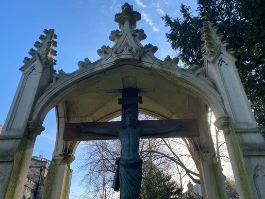 WW1 Calvary Cross All Saints Church Fulham - south side - Taken by Jessica Armstrong 14 Mar 2022