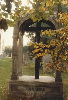 This memorial commemorates parishioners who died during the Great War. Their names are recorded on a second memorial that can be viewed within the church, on the wall behind the aisles on the south (ie: river) side of the building.