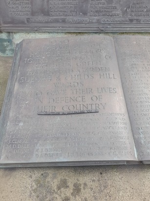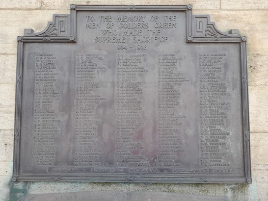 Golders Green war memorial - Taken by Chris Reynolds 15 Feb 2017