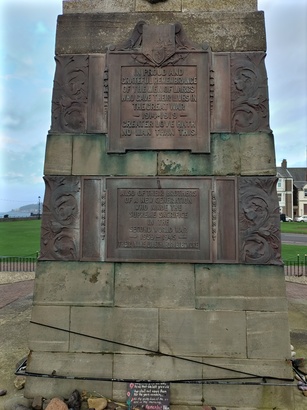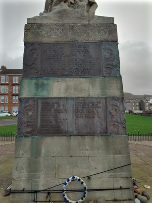 WWI: IN PROUD AND GRATEFUL REMEMBERANCE OF THE MEN OF LARGS WHO GAVE THEIR LIVES IN THE GREAT WAR 1914 – 1919 GREATER LOVE HATH NO MAN THAN THIS WWII: ALSO OF THEIR BROTHERS OF A NEW GENERATION WHO MADE THE SUPREME SACRIFICE IN THE SECOND WORLD WAR 1939 – 1945 THEIR NAME LIVETH FOR EVERMORE