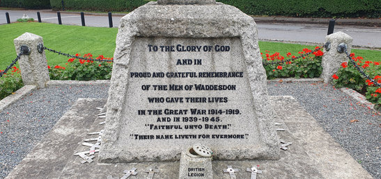To The Glory Of God / And In / Proud And Grateful Remembrance / Of The Men Of Waddesdon / Who Gave Their Lives / In The Great War 1914-1919. / And In 1939-1945. / 'Faithful Unto Death.' / 'Their Name Liveth For Evermore'