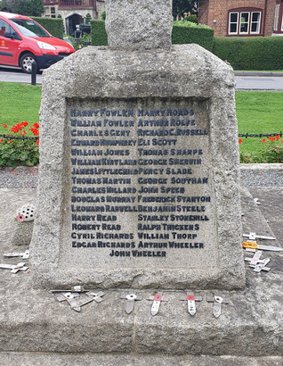 Harry Allen, Robert Crook, Harry Read, Thomas Atkins, Alfred Evans, Robert Read, Algernon Ashby, John Evans, Cyril Richards, Thomas Bates, Leonard Evans, Edgar Richards, Robert Bird, Walter Evans, Harry Roads, Hubert Biswell, Henry Farmer, Arthur Rolfe, Stanley Biswell, William Field, Richard C. Russell, Thomas Biswell, Alfred Fowler, Eli Scott, Frank Brackley, Arthur Fowler, Thomas Sharp, Sidney Burgess, Arthur J. Fowler, George Sherwin, Harry Carter, Harry Fowler, Percy Slade, Isaac Caterer, William Fowler, George Southam, Bertie Charlott, Charles Gent, John Speed, Percival Charlott, Edward Humphrey, Frederick Stanton, William Cook, William Jones, Benjamin Steele, Arthur Copcutt, William Kirtland, Stanley Stonehill, Thomas Cox, James Littlechild, Ralph Thickens, James Creed, Thomas Martin, William Thorpe, Fred Cripps, Charles Millard, Arthur Wheeler, Harry Cripps, Douglas Murray, John Wheeler, Robert Cripps , Leonard Radwell,