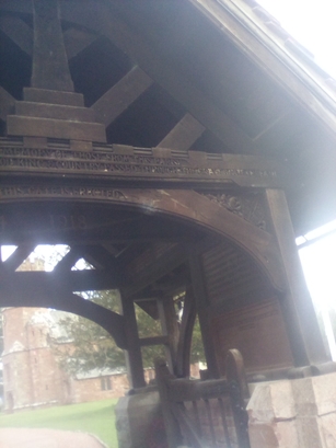 To the glorious memory of those from this parish / who in the Great War in defence of God King & Country passed through the grave and gate of death / This gate is erected / 1914 1918 / 1939 1945