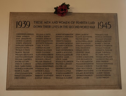 1939 THESE MEN AND WOMEN OF PENRITH LAID/DOWN THEIR LIVES IN THE SECOND WORLD WAR 1945