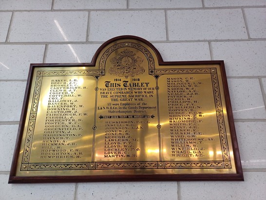 LONDON AND NORTH WESTERN RAILWAY GOODS DEPARTMENT WOLVERHAMPTON DISTRICT WAR MEMORIAL - Taken by Doug Lewis 04 Mar 2016