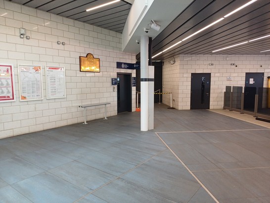 In main concourse of station on a wall