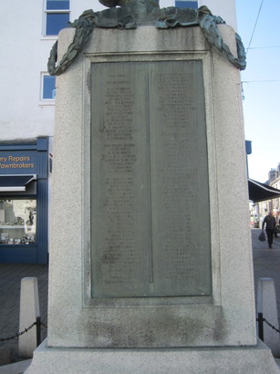 IN HONOUR OF THE MEN/OF/KENDAL/WHO LOYALLY SERVED IN/THE GREAT/WAR/AND IN PROUD/AND GRATEFUL REMEMBRANCE/OF THOSE NAMED HEREON/WHO GAVE THEIR LIVES/FOR THEIR COUNTRY/THIS MONUMENT IS ERECTED/BY THEIR FELLOW TOWNSMEN/[names]/WORLD WAR 1939-1945/[names]/1950-1951/[name]