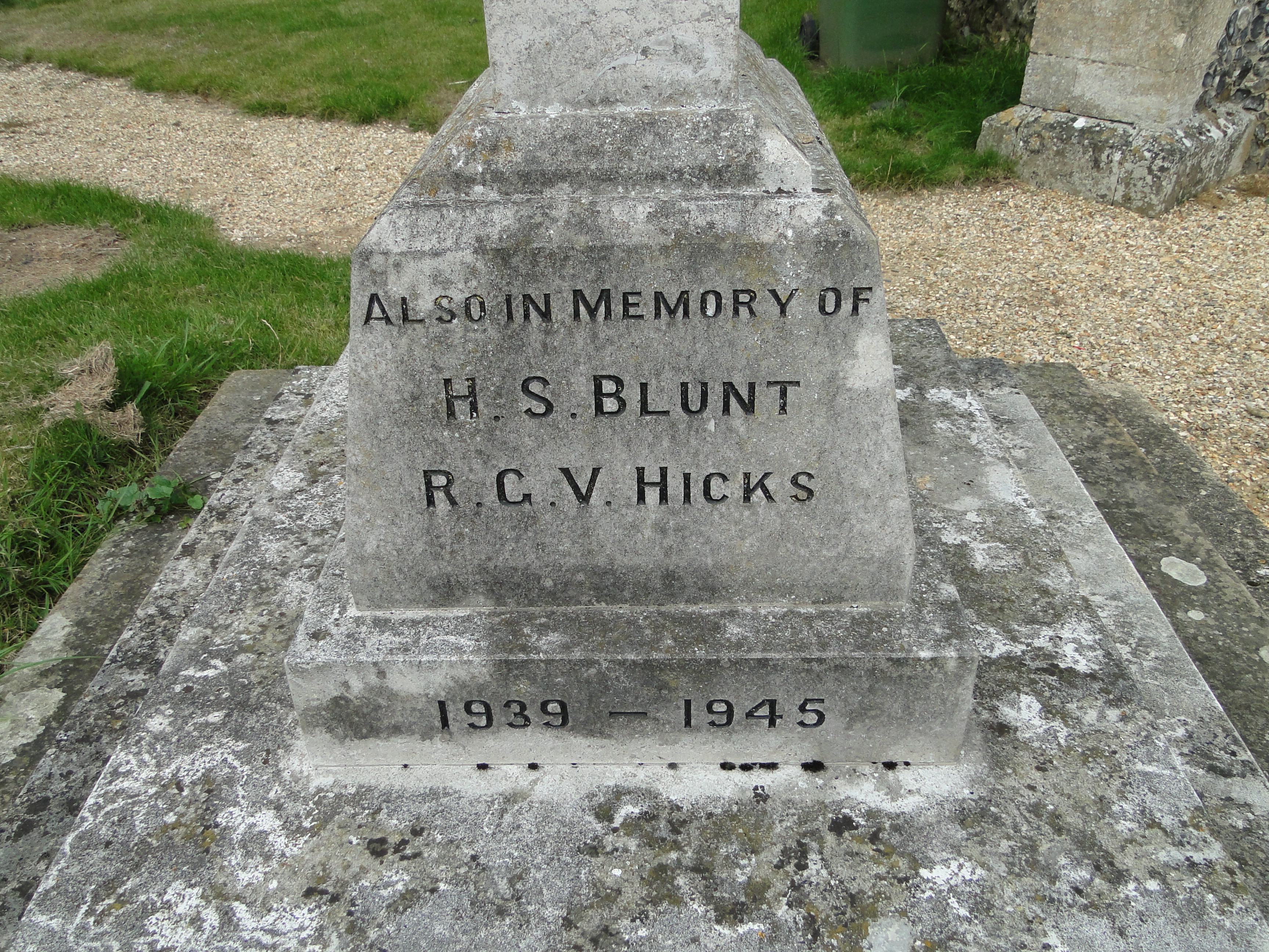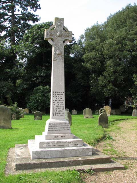 (WW1) H.A.BOWDEN/ P.J.BROWN/ C.W.COE/ T.A.COE/ E.W.COLBY/ W.COOPER/ H.L.HUNT/ D.JOHNSON/ G.R.PAYNE/ G.SMITH/ G.STEVENSON/ E.F.UPTON. (WW2) H.S.BLUNT/ R.G.V.HICKS