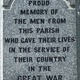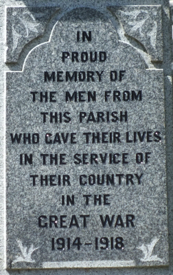 IN PROUD MEMORY OF THE MEN FROM THIS PARISH WHO GAVE THEIR LIVES IN THE SERVICE OF THEIR COUNTRY IN THE GREAT WAR 1914-1918. (on the reverse) ALSO OF THOSE WHO FELL IN THE 1939-1945 WAR.