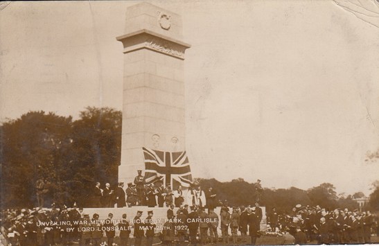 Postcard Rickerby Park Carlisle memorial - Taken by Unknown - Part of Sarah Marr Postcard Collection (Date estimated) 25 May 1922