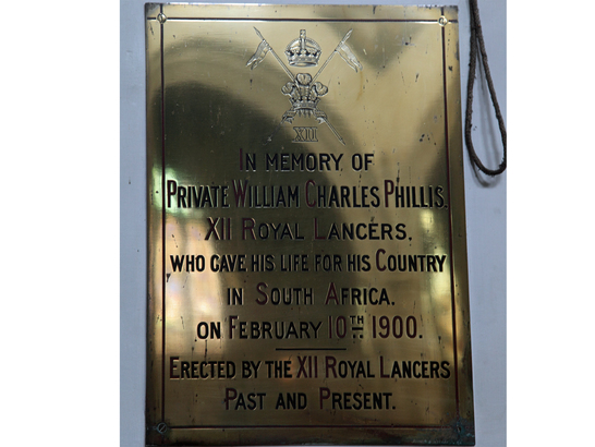 in memory of/ private charles william charles phillis/ xii royal lancers/ who gave his life for his country/ in south africa/ on february 10th 1900/ erected by the xii royal lancers/ past and present.