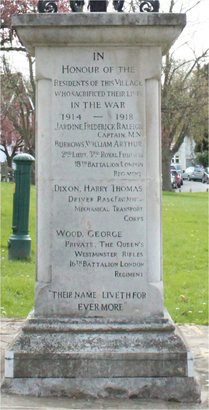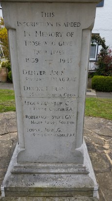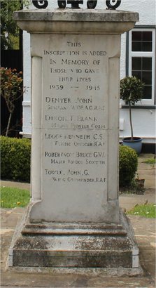 1914-18 JARDINE Frederick Raleigh; BURROWS William Arthur; DIXON Harry Thomas; WOOD George; 1939-1945 DENYER John; DIXON T Frank; LEGGE Kenneth; ROBERTSON Bruce; TOWLE John G.