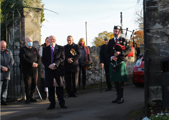 Piper Lee Moore playing musical tributes at the Crookston war memorial service - Taken by Angus N Bathgate 11 Nov 2021