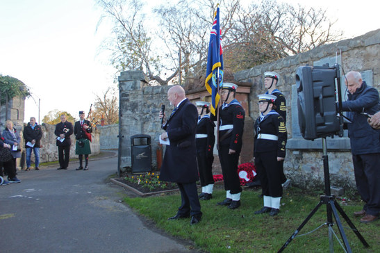 Alister Y Hadden Convener for Crookston war memorial service alongside Musselburgh Sea Cadets - Taken by Angus N Bathgate 11 Nov 2021