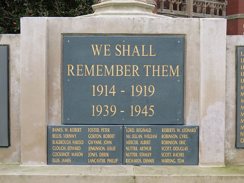 Holy Trinity Church Cross, WW2 names - Taken by Paul Charlesworth 24 Nov 2014