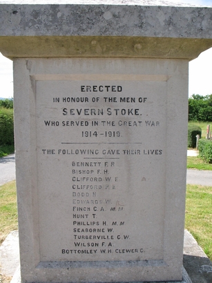 Severn Stoke War Memorial - names of the fallen - Taken by Chris Leach 01 Jul 2013
