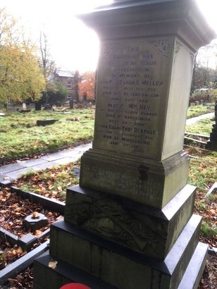 This monument was created by public subscription, in memory of 6119 Pte Joshua C Mellor Vol Co 1st West Ridg Regt died at Bloemfontein June 22nd 1900. 9627 Pte Wm Hey of the 2nd Scots Guards died at Harrismith decr 28th 1900. 3849 Corpl Thos Dearnley of the Liverpool Regt died at Middleburd Jany 3rd 1901. All of Marsden who lost their lives whilst fighting for their country in the South African War.