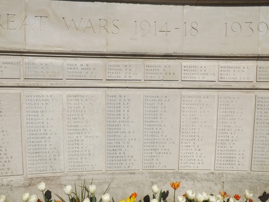 On the Quadrant Walls, WW2 names are on the Upper, narrower sections. WW1 names are on the Lower, wider sections. Only WW2 names appear on the additional walls.