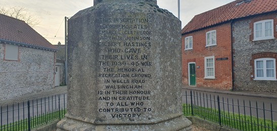 Little Walsingham and Egmere cross - rear inscription and WW2 names - Taken by Helen Steed 21 Jan 2025