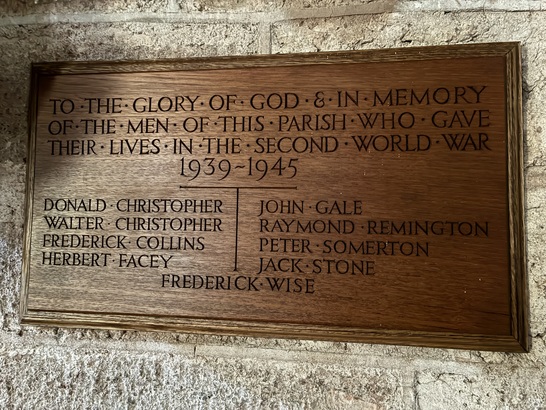 TO THE GLORY OF GOD & IN MEMORY / OF THE MEN OF THIS PARISH WHO GAVE / THEIR LIVES IN THE SECOND WORLD WAR / 1939 - 1945