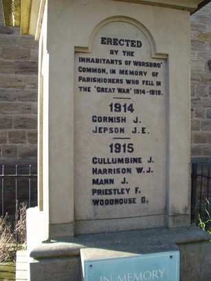 Erected by the inhabitants of Worsbro’ Common in memory of the fallen of this parish in the Great War