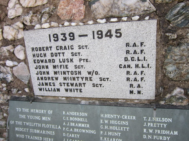 Port Bannatyne War Memorial WW2 + Midget Submaries (ref 161238) - Taken by Ian S (geograph) licensed for reuse under the Creative Commons License 25 Aug 2013
