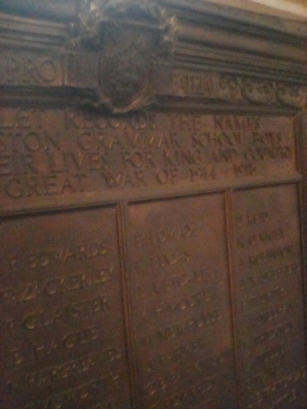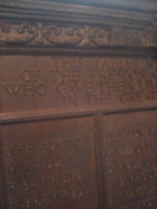 This tablet records the names of the Preston Grammar School Boys who gave their lives for King and Country in the Great War of 1914-1918.