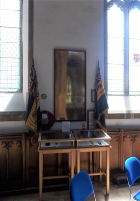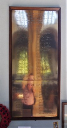The chancel screen in dedicated / to the Glory of God and in / memory of the men of this town / who laid down their lives in / the Great War 1914 to 1918. (Names) 1939-1945 (Names)