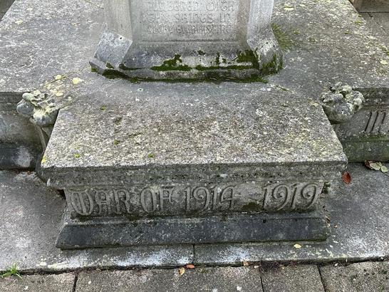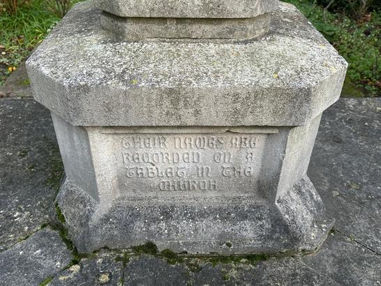 In memory of the men from this church and parish who gave their lives in the Great War of 1914-1919. Their names are recorded on a tablet in the church. Make them to be numbered with thy saints in glory everlasting.