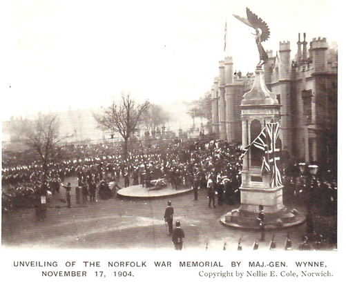 ERECTED/BY THE/COUNTY OF NORFOLK & CITY OF NORWICH/ AS A TRIBUTE TO THE MEMORY OF THE/ GALLANT NORFOLK MEN/ WHO DIED FOR THEIR COUNTY DURING THE WAR/IN SOUTH AFRICA A.D. 1899-1902 Other Plaques: [names]