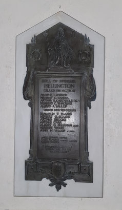 ROLL OF HONOUR / HELLINGTON / KILLED IN ACTION / (Names) / SERVED WITH THE COLOURS / (Names) / (Names of Rector and church wardens) “THANKS BE UNTO GOD / WHICH GIVETH US / THE VICTORY” //